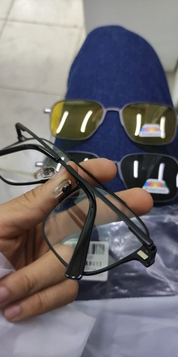 For those who value versatility and cutting-edge design, the HBK New Metal 3 In 1 Polarized Sunglasses are the ultimate eyewear solution. This trending style offers three essential functions in one sleek frame: optical (clear) glasses, UV400 polarized sunglasses, and blue-light computer glasses. The magnetic clip-on attachment allows you to switch at any time between looks and functions with ease. The high-quality polarized lenses provide great UV protection and reduce glare effectively, ensuring your colors stay clear and natural—a crucial benefit for driving or spending time outdoors. Designed for all-day comfort, the metal frame features a stable hinge, comfortable nasal support, and a stylish curved leg design, making this frame a practical and fashionable choice.